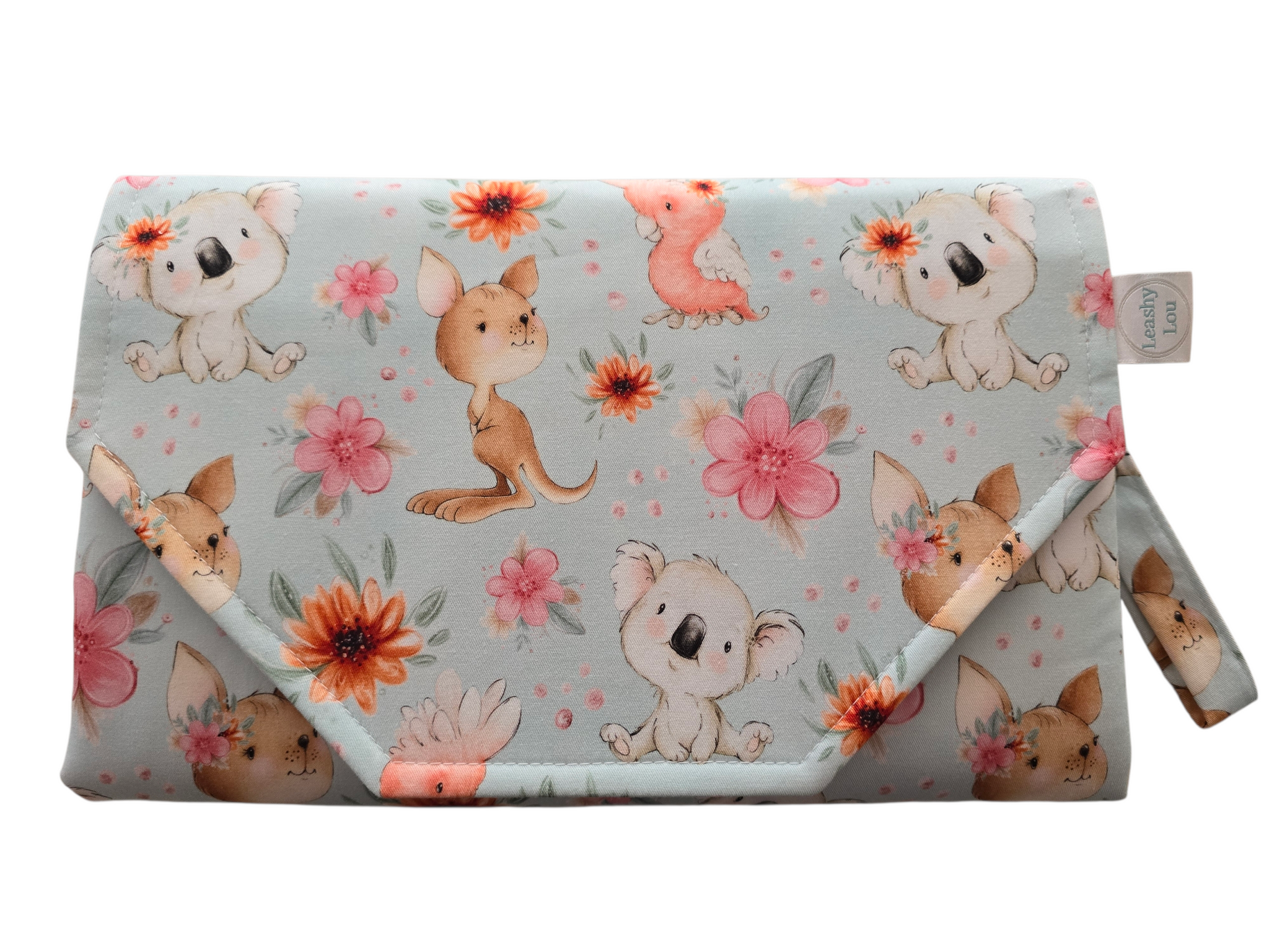 Floral Aussie Animals Nappy change mat clutch DELUXE